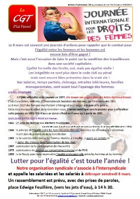 Accueil > Actualités > Tract de la CGT PSA Vesoul : 8 mars