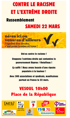 Un rassemblement est organisé samedi 22 mars à 10H Place de la République à Vesoul.