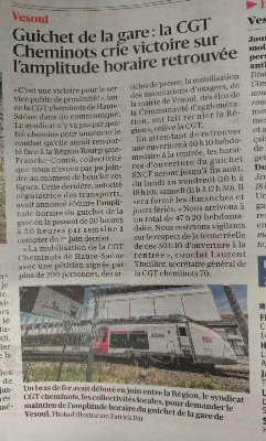 L’amplitude d’ouverture des guichets de la gare de Vesoul revue à la hausse suite à la mobilisation de la #cgt cheminots.